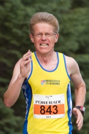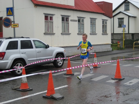 Næst var það hálft maraþon á Akranesi í júní. Það gekk vonum framar þrátt fyrir frekar hryssinglegt veður og vind. Ég fann mig vel og bætti persónulega metið í 1:32:38 klst. Í Ármannshlaupinu í júlí tókst mér svo að klípa 10 sek. af fertugsmetinu mínu í 10 km með því að hlaupa á 41:53 mín. Fékk einhvern krampa í tognaða lærið í lokin og kom örþreyttur í mark með sögulega grettu á andlitinu, eins og sést á mynd Gunnlaugs Júlíussonar hér til hliðar. Var nokkuð lengi að jafna mig almennilega á þessu, og ætlaði t.d. ekkert í Reykjavíkurmaraþonið, nema þá í mesta lagi í hálft. Náði heldur ekki að æfa vel þessar vikur, alltaf með einhver ónot í baki og fótum. En eftir að hafa hlaupið 40 km hring í kringum Skorradalsvatn í byrjun ágúst sá ég að þetta væri náttúrulega ekkert stórmál. Lét því slag standa með maraþonið. Var alls ekki vel undirbúinn, en fyrstu 35 kílómetrana leit þó út fyrir að ég myndi bæta tímann minn frá því í fyrra, sem var þó betri en mig hafði dreymt um að ná í lífinu. En svo fékk ég krampa undir lokin, eins og ég gat svo sem búist við. Lauk hlaupinu á 3:18:47 klst, eða 100 sek lengri tíma en í fyrra. Var í 7. himni með þetta, og ekki spillti fyrir að Þorkell sonur minn skellti sér með, fylgdi mér lengst af og var ekki nema 52 sek á eftir mér í markið, þrátt fyrir að vera fyrst og fremst 400 m hlaupari. Ég held að þessi árangur hafi dugað mér í 43. sæti á afrekaskrá ársins, og líklega í 5. sæti meðal karla á sextugsaldri. Þegar litið er á Íslandssöguna alla rétt hangi ég inni á topp-200, var líklega í 192. sæti í árslok og hafði þá lækkað um 24 sæti á árinu. Maður þarf nefnilega að vera í stöðugri framför til að halda stöðu sinni á þessum hála lista. Alls hafa u.þ.b. 1.650 Íslendingar hlaupið maraþonhlaup það sem af er, og fer ört fjölgandi. Maraþon er ekki lengur sérverkefni fyrir sérstaka sérvitringa, heldur raunhæft markmið og viðfangsefni fyrir venjulegt fólk.