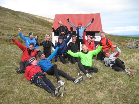 Við gamla bæinn í Gröf í Bitru við upphaf Hamingjuhlaupsins 2011. Þaðan lögðu þessir hraustu hlauparar af stað upp úr kl. 16 laugardaginn 2. júlí 2001 áleiðis til Hólmavíkur, þar sem Hamingjudagar Á Hólmavík stóðu sem hæst. F.v. Gunnlaugur Júlíusson, Stefán Gíslason, Finnur Dagsson, Hafþór Benediktsson, Birkir Þór Stefánsson, Ingimundur Grétarsson og Guðmann Elísson. (Rögnvaldur Gíslason tók myndina).