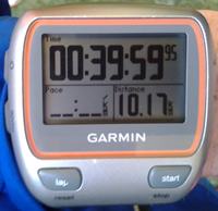Fyrstu kílómetrarnir í hlaupinu voru frekar venjulegir, en mér ós ásmegin eftir því sem leið á hlaupið. Eftir 9 km var tíminn 35:50 mín og þar með ljóst að 40 mínúturnar væru innan seilingar. Síðasti spölurinn var erfiður enda heldur á fótinn, og í markinu sýndi klukkan 40:00. Þetta var þá bara spurning um sekúndubrot til eða frá. Og viti menn, þetta lenti réttu megin við strikið. Lokatíminn var 39:59 mín. Hefði ekki viljað neinn annan tíma frekar.