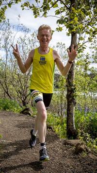 Kominn í mark í Þórsmörk, blóðugur í framan með brotna öxl. Glaður, en leið ekki vel. (Ljósm. Hlaup.is).
