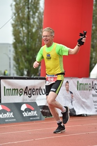 Í september reyndi ég af fremsta megni að byggja upp getu fyrir Þriggjalandamaraþonið, en ætlaði mér reyndar aðeins um of eins og fyrr segir. Mætti í Flensborgarhlaupið (10 km) 19. september þrátt fyrir að hafa tekið frekar stífa hraðaæfingu daginn áður. Ég veit svo sem alveg að það má ekki, en skynsemin ræður ekki alltaf. Mér gekk alveg þokkalega í þessu hlaupi, hljóp á 42:47 mín sem var svipað og ég bjóst við. En þegar 300 m voru eftir tognaði ég í vinstra læri. Það var rökrétt en ekki að sama skapi ánægjulegt.