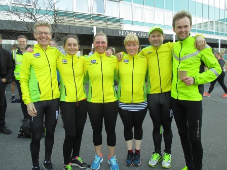 Flandrarar að loknu Icelandairhlaupi, þ.e.a.s. ég, Hrafnhildur, Anna Helga, Pálína, Gunnar og Jósep. Það er ekki amalegt að vera hluti af svona hlaupahópi! (Man ekkert hver tók þessa mynd).