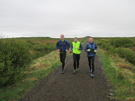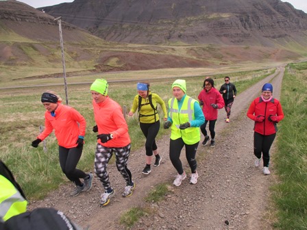 Alhörðustu hlaupafélagarnir á Háfslækjarhringnum á uppstigningardag, nánar tiltekið spölkorn vestan við Skilklett. Lærið beið á grillinu heima hjá Björk.