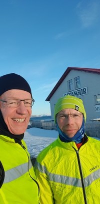 Á hlaupaæfingu með meistara Birki 9. mars í 7 stiga frosti – við Sævang, þar sem keppnisferillinn minn í hlaupum hófst fyrir tæpum 47 árum.