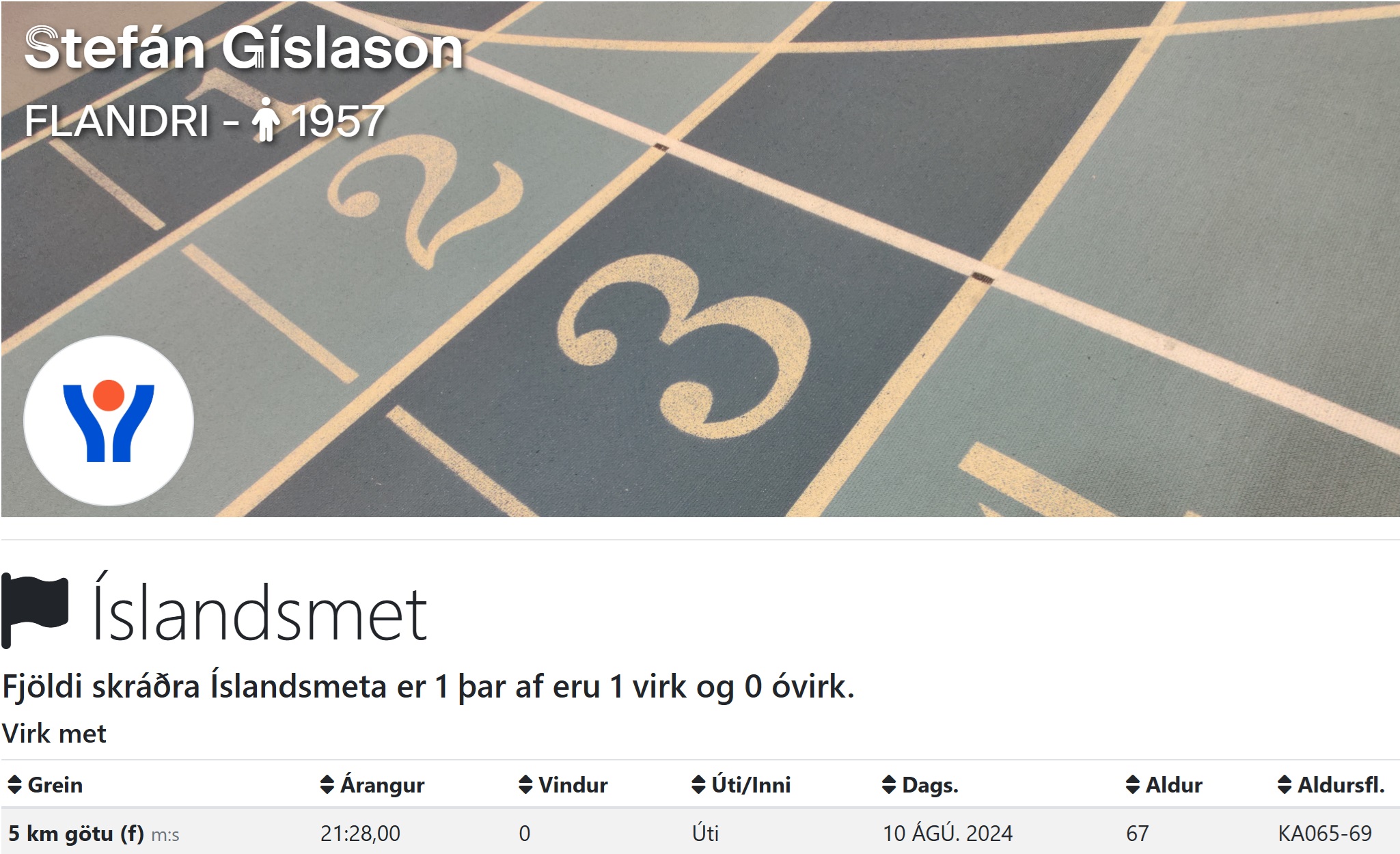 Fyrra verkefnið varð eiginlega til fyrir slysni. Í Víðavangshlaupi ÍR jafnaði ég nefnilega aldursflokkamet í 5 km götuhlaupi 65-69 ára karla (byssutími 21:52 mín) án þess að það hafi kannski verið sérstaklega á dagskránni. Eftir það lá beint við að bæta um betur til að eiga metið einn, alla vega um sinn. Til þess þurfti ég að hlaupa eitt eða fleiri vottuð 5 km hlaup til viðbótar.