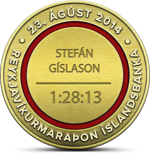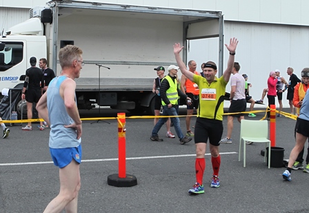 Þegar ég kom inn á beinu brautina sá ég á markklukkunni að bæting var ekki lengur í spilunum. En þetta var samt ótrúlega gaman, algjör sigurstund barasta. Kom í markið á 3:08:30 mín, þ.e. ekki nema 11 sek frá besta tímanum mínum. Síðustu 2,2 kílómetrarnir höfðu sem sagt verið 45 sek. hægari en í fyrra, en hverjum var ekki sama. Hlaupið var búið og mér leið vel, bæði í sál og líkama.