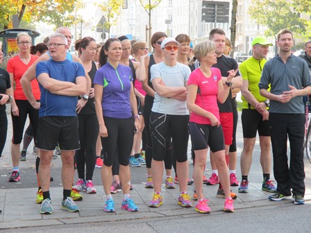 Við vorum komin á leikvanginn upp úr kl. 8:30. Mér finnst afar þægilegt að vera mættur svona tímanlega. Þegar maður er á annað borð kominn á staðinn er erfitt að finna sér nokkuð til að hafa áhyggjur af. Og tíminn leið líka hratt við spjall og vangaveltur um áform dagsins. Sólin var farin að gægjast fram og hitastigið hækkaði jafnt og þétt. Kannski var hægt að búa sér til svolitlar áhyggjur af því að hitinn yrði til trafala þegar á liði hlaupið, en áhyggjur eru reyndar síst til þess fallnar að bæta árangur og upplifun í lífinu.