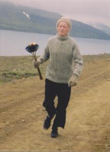Og allt í einu var stundin runnin upp. Völlurinn opnaðist í allri sinni dýrð með háværri tónlist og fagnaðarópum. Síðustu 300 metrarnir liðu eins og í draumi og ég átti nóga orku eftir í góðan endasprett. Hræðslan við að krampinn tæki sig upp var gleymd og tilfinningin í fótunum bara eins og á góðri sprettæfingu hjá Flandra á mánudegi, enda var ég ekki nema rétt um eina mínútu að skeiða síðustu 300 metrana. Veifaði auðvitað svolítið til áhorfenda og svona, enda þess fullviss að þeir væru allir að fagna mér. Vissi að Björk sæti þarna einhvers staðar uppi í stúkunni, en mannfjöldinn og hávaðinn var miklu meiri en svo að ég kæmi auga á hana eða heyrði hvatningarhrópin. En það var svo sem aukaatriði. Aðalatriðið var að vita af henni þarna.