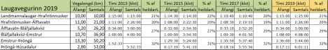 Við drykkjarstöðina sýndi úrið mitt 13,52 km og 1:19:07 klst, sem þýddi að meðalhraðinn hafði verið um 5:51 mín/km. Ég var vel sáttur við það, enda leiðin seinfarin um krókótta skógarstíga, holt, móa og mýrar. Yfirlýst markmið mitt var að ljúka hlaupinu á innan við 3:30 klst, en annað markmið til eigin nota var að klára þetta á 3:12 klst og til þess þurfti ég að vera á 6:00 mín/km að meðaltali. Ég var sem sagt vel á undan áætlun þegar þarna var komið sögu.