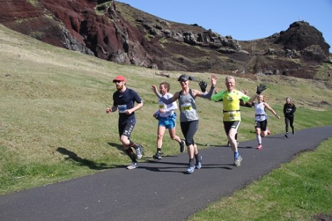 Seinni hluti hlaupsins var einsleitari en fyrri hlutinn þar sem nú var hlaupið eftir fólksbílafærum stíg, sem er reyndar ætlaður göngu- og hjólafólki en ekki bílum. Leiðin var samt svolítið erfið, þar sem hver smábrekkan tók við af annarri. Alla vega hægðist á mér. Verð reyndar að viðurkenna að mér hálfleiddist. Bæði var að ég fann ekki ferskleikann sem hefur fylgt mér lengst af á hlaupaferlinum, og svo hitt að leiðin var tilbreytingarlaus og ég aleinn á ferð að frátöldu hjólafólki sem ég ýmist mætti eða sá á eftir. Stuttu eftir að ég hljóp fram hjá drykkjarstöðinni mætti ég reyndar konu sem hafði verið talsvert langt á undan mér fram að því – og eðlilega fór ég þá að efast um að ég væri á réttri leið. Vissulega voru allar merkingar einstaklega bleikar og greinilegar, en þegar þarna var komið sögu hafði ég ekki séð nein merki lengi. Þau voru líka óþörf þar sem stígurinn var eina mögulega leiðin. Efinn hvarf svo við næsta merki, alllöngu síðar. Seinna í hlaupinu fór þessi sama kona fram úr mér aftur. Hún hefur væntanlega átt aðkallandi erindi á drykkjarstöðina og því ákveðið að leggja lykkju á leið sína.