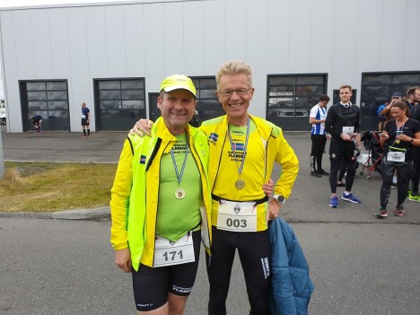 Í markinu fékk ég lítinn útprentaðan miða með tímanum mínum í hlaupinu og þar koma líka fram að ég hefði verið fyrstur allra í mark í flokki 60-69 ára. Það kom mér reyndar svolítið á óvart, því að snemma í hlaupinu hljóp gráhærður öldungur fram úr mér og ég náði honum aldrei aftur. Eftir á að hyggja var hann kannski miklu yngri en ég. En mér fannst gaman að hafa unnið aldursflokkinn, þó að ég upplifði það svo sem ekki sem neinn stórsigur.