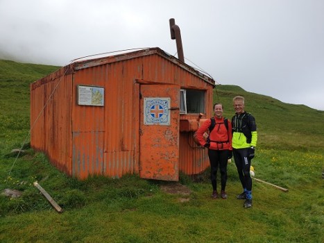 Gunnar og Birkir í morgunsvalanum, tilbúnir í langþráð 100 km hlaup.