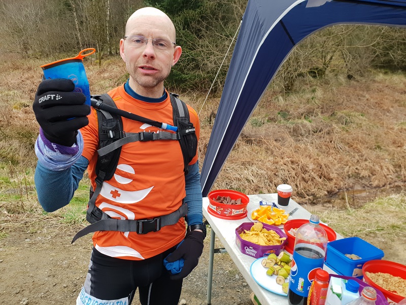 Við drykkjarstöðina sýndi úrið mitt 13,52 km og 1:19:07 klst, sem þýddi að meðalhraðinn hafði verið um 5:51 mín/km. Ég var vel sáttur við það, enda leiðin seinfarin um krókótta skógarstíga, holt, móa og mýrar. Yfirlýst markmið mitt var að ljúka hlaupinu á innan við 3:30 klst, en annað markmið til eigin nota var að klára þetta á 3:12 klst og til þess þurfti ég að vera á 6:00 mín/km að meðaltali. Ég var sem sagt vel á undan áætlun þegar þarna var komið sögu.