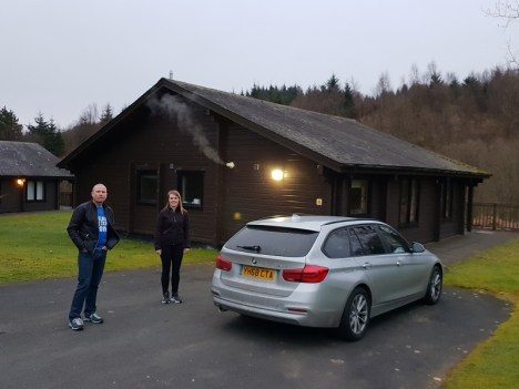 Það hafði vafist töluvert fyrir mér að finna hentugan gististað sæmilega nálægt Kielder þar sem hlaupið átti að hefjast og enda. En fyrir einhverja einstaka lukku hafði ég komist á snoðir um orlofshúsahverfi á vegum samtakanna Calvert Trust, sem er eins konar bresk útgáfa af Sjálfsbjörg eftir því sem ég kemst næst. Þessi samtök reka sem sagt orlofsbúðir fyrir fatlaða á nokkrum stöðum í Bretlandi, þ.á.m. rétt við Kielder uppistöðulónið, svo sem 10 km sunnan við Kielder. Þarna höfðum við tryggt okkur hús til að sofa í þessar fjórar nætur sem við áttum saman í Bretlandi – og þangað vorum við komin síðdegis á fimmtudeginum eftir ítarlega úttekt á sveitavegum syðst í Skotlandi.