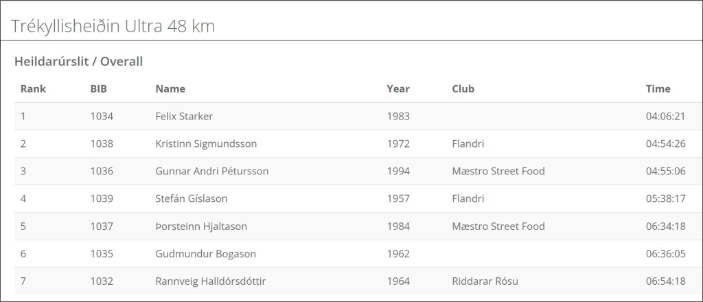 Síðastliðinn laugardag tók ég þátt í „Trékyllisheiðin Ultra“, 48 km utanvegahlaupi á Ströndum, sem nú var haldið í fjórða sinn. Markmið dagsins var að bæta tímann minn frá 2021 um tæpan hálftíma (nánar tiltekið um 27:45 mín), þ.e.a.s. að ljúka hlaupinu á 5:30:00 klst. í stað 5:57:45 eins og raunin varð 2021. E.t.v. hljómar hálftímabæting sem nokkuð glannaleg áætlun (á „mínum aldri“). En ég taldi þetta samt alveg raunhæft, enda hefur margt jákvætt gerst á hlaupaferlinum síðustu þrjú ár. Markmiðið náðist reyndar ekki, því að lokatíminn var 5:38:17. En ég var samt alsáttur að dagsverkinu loknu.